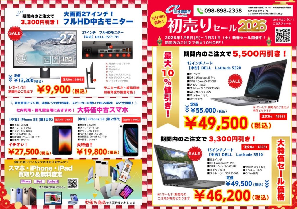 「法人様向け 中古PC初売りセールを開催中」です!